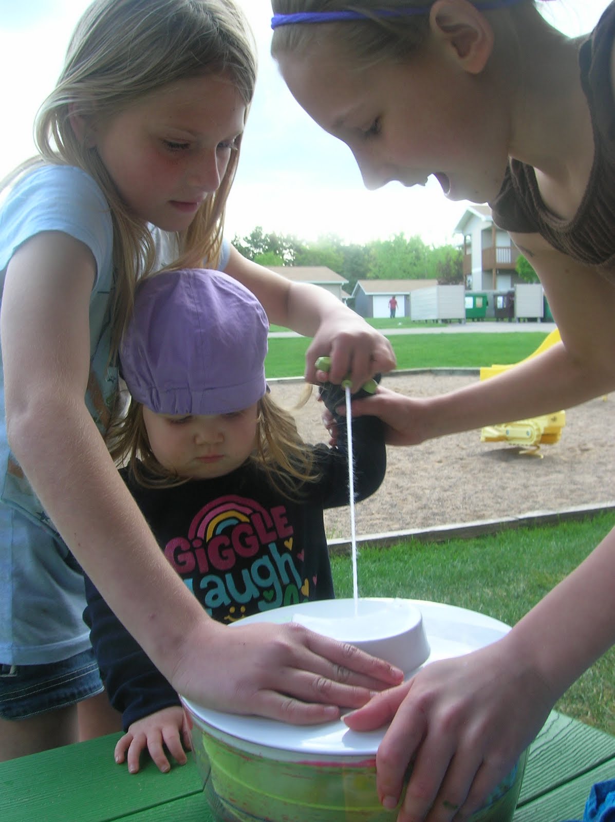 While we were painting a couple of Gracie's friends came over to see if she could come out and play. I invited them in, and the next thing I knew I had eight kids in my living room spin painting! I decided to move them outside before I ended up with tie dye carpet-good thing I did!
